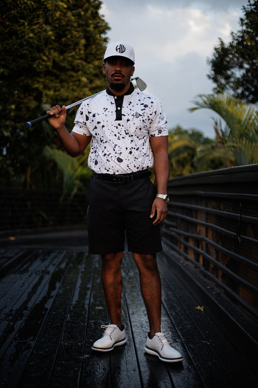 Mock Neck – White Performance Golf Polo | Happy Whackers